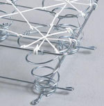 | webbing | the foundation, composed of interwoven strips of synthetic material, attached to the wood frame of upholstered furniture. |